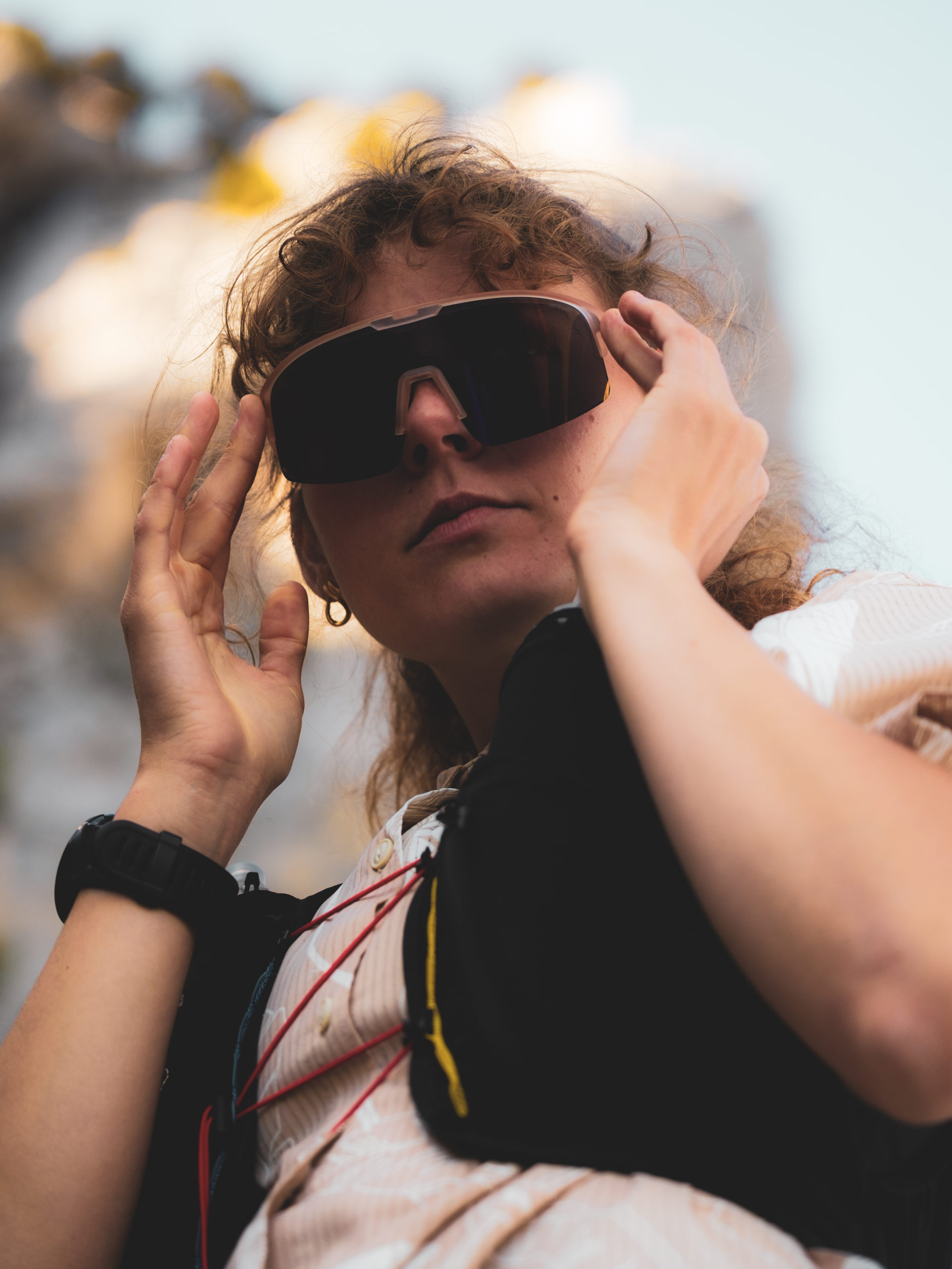 Avec son large écran monolens, la VORTEX offre une vision panoramique exceptionnelle pour garder une parfaite lecture du terrain, aussi bien en trail running qu’en vélo.